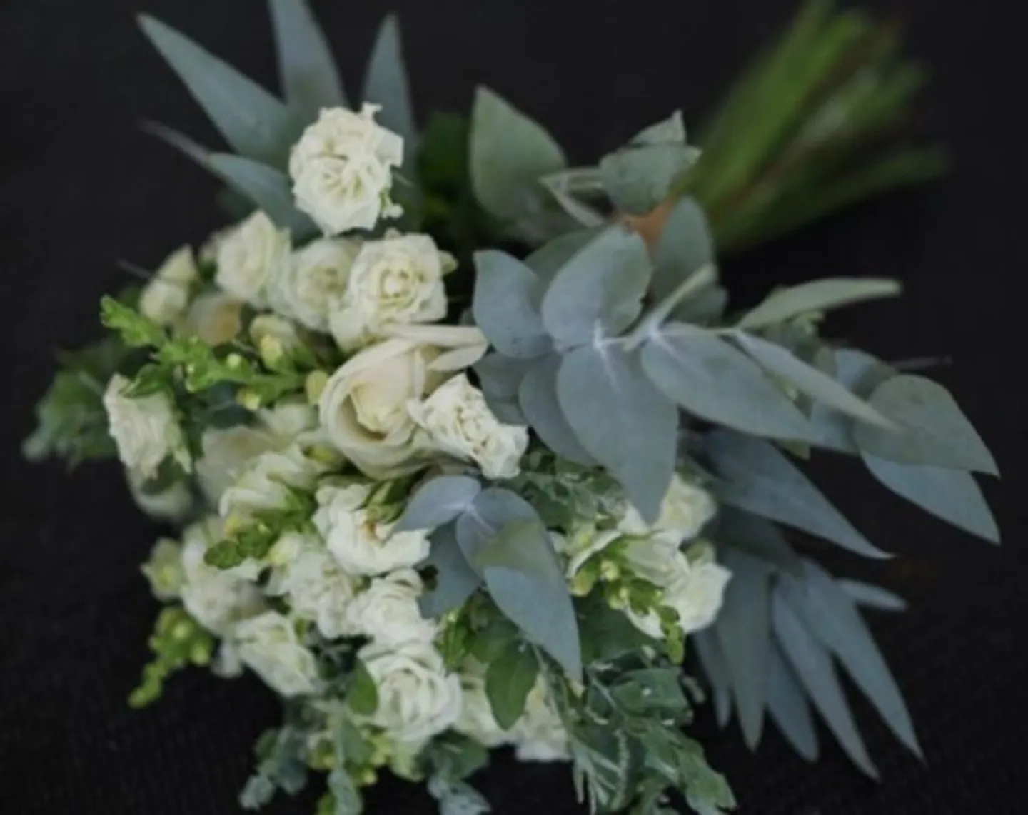 ①白バラとグリーンリーフのクラッチ